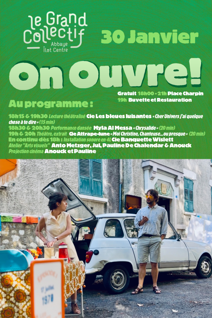 Le Grand Collectif célèbre son ouverture trimestrielle le 30 janvier. Au programme, des spectacles et des créations artistiques des membres du collectif : théâtre, danse, installation sonore, cinéma… C’est gratuit et il y en aura pour tous les goûts !