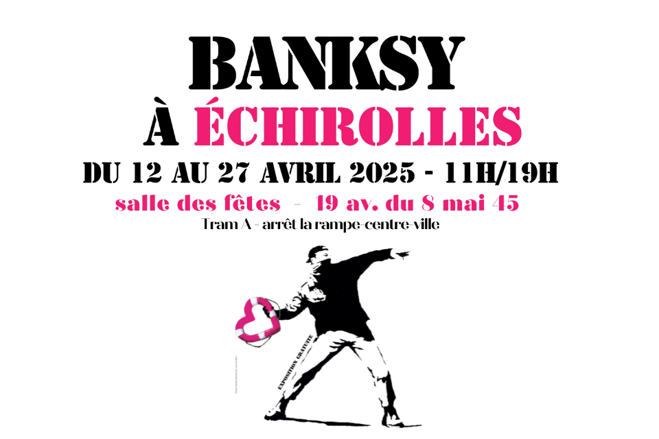 Du 12 au 27 avril, la salle des fêtes d’Échirolles accueille une exposition exceptionnelle et gratuite avec plus de 250 œuvres de l’énigmatique street-artiste mondialement connu.