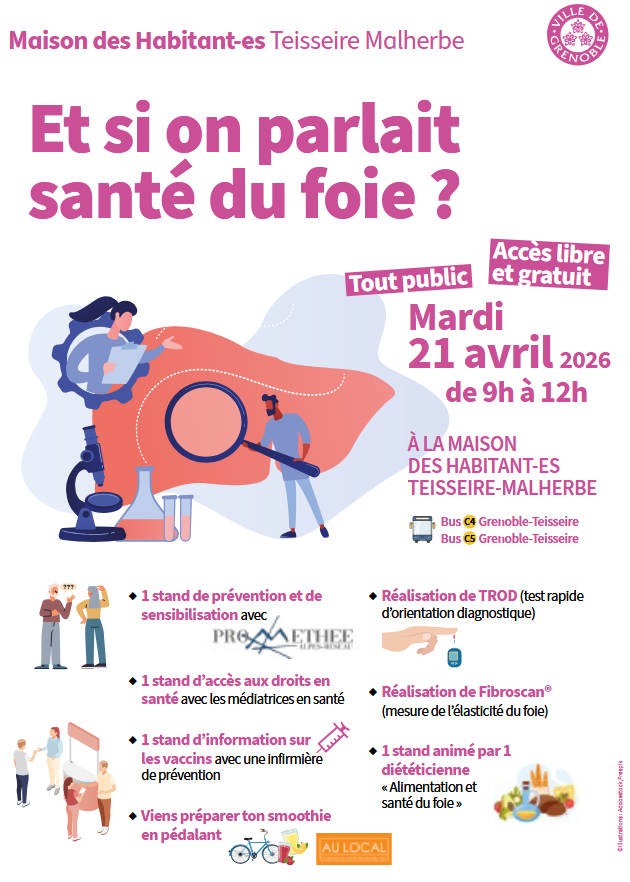 Venez à la rencontre de professionnels de santé et échanger sur le sujet de la prévention des pathologies du foie et la sensibilisation aux facteurs de risques évitables. Sur place, plusieurs stands d’informations et d’animations : accès aux droits en santé, alimentation, mais aussi la possibilité de réaliser des tests et examens. Les plus sportifs et/ou les plus gourmands pourront aussi tester le vélo à smoothies !
