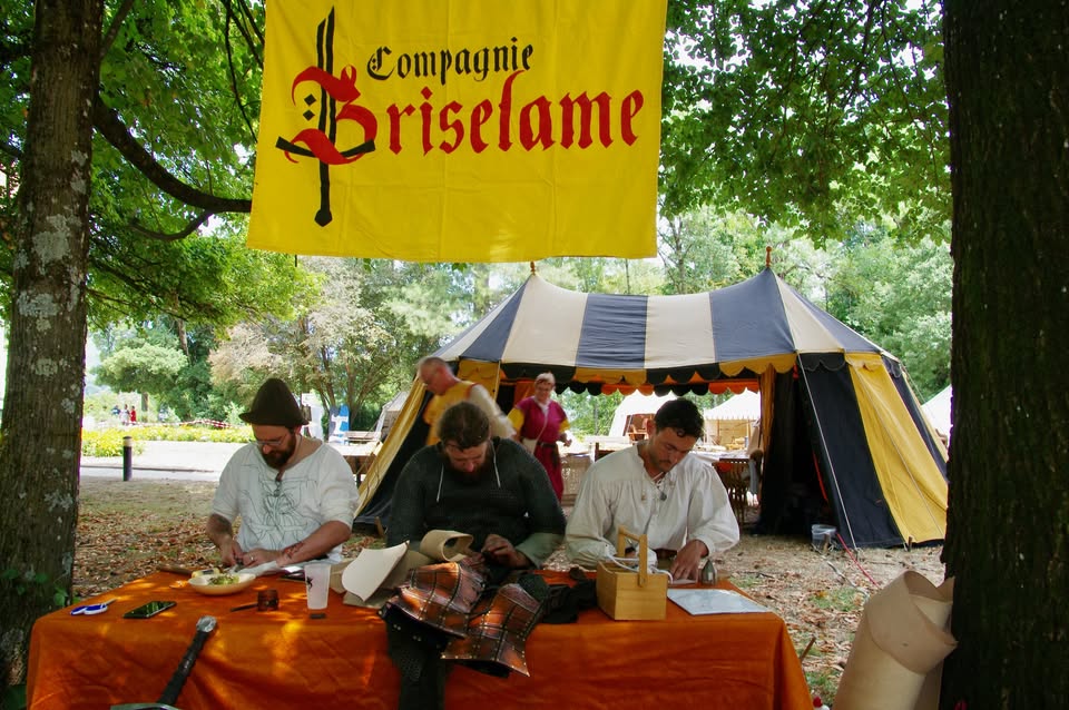 La compagnie Briselame propose une immersion dans l’époque médiévale, vous invitant à participer à des ateliers variés : cuir repoussé, cotte de mailles, calligraphie, héraldique, présentation de l’équipement militaire, cuisine médiévale, combat à l’épée en mousse pour les plus jeunes, initiation au combat à l’épée pour les plus grands, archerie et autres surprises.