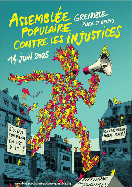 Place Saint-Bruno, le 14 juin se tiendra une assemblée populaire ouverte à tous. Elle a pour but de donner une voix aux habitants de la ville et de la rue et exprimer leur colère contre les exclusions et la précarité sous toutes ses formes. Rencontres, échanges et revendications collectives au travers d’une marche à 10h, d’animations tout l’après-midi et d’un bal à 20h.