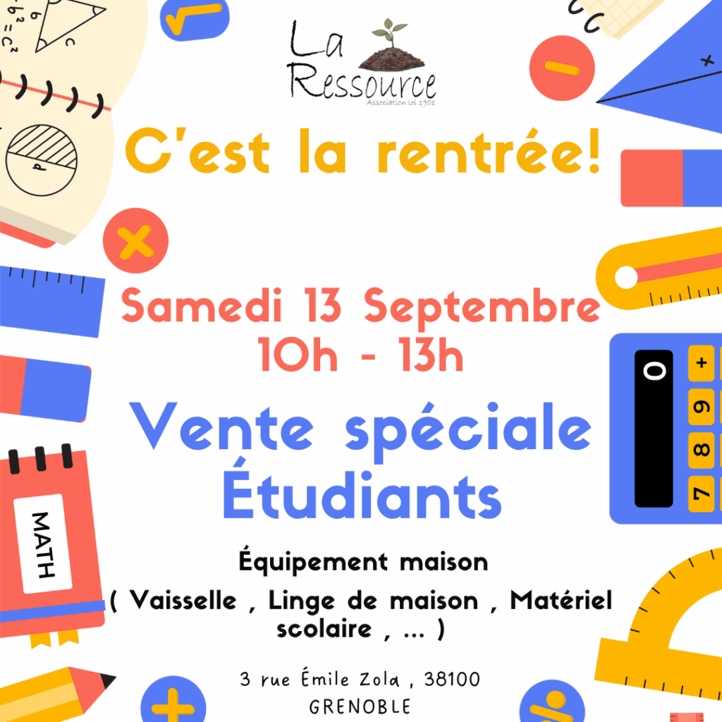 L’association La Ressource vous propose une vente exceptionnelle pour la rentrée scolaire ! Équipement de maison, vaisselle, linge, matériel scolaire… N’hésitez pas à y faire le plein pour une rentrée en toute sérénité !