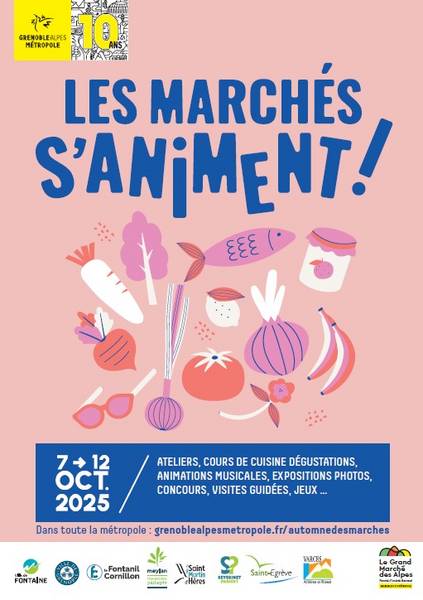 Dans le cadre du Mois de la Transition Alimentaire, les marchés de l’agglomération grenobloise s’animent d’ateliers, cours de cuisine, expositions, jeux… Pour plus d’informations et pour découvrir le programme complet et les villes concernées, rendez-vous sur le site de Grenoble Alpes Métropole.