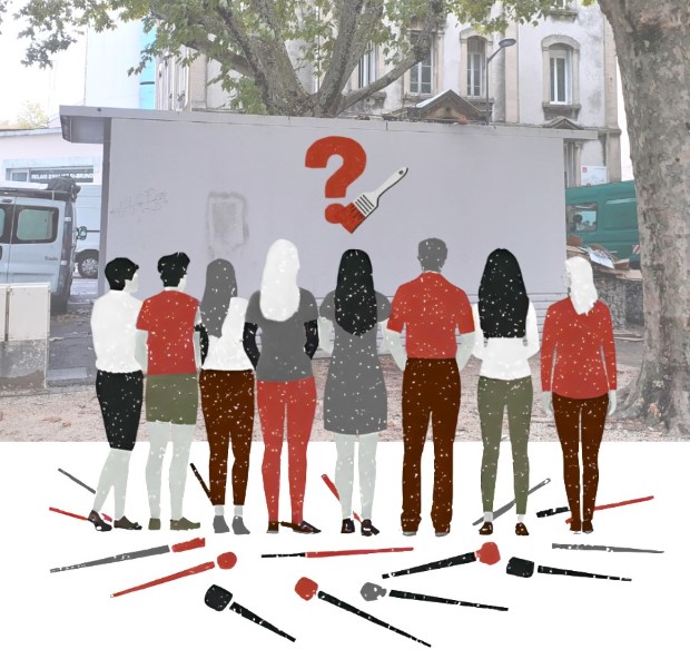 Venez participer à un atelier créatif avec l’artiste Nessé pour imaginer une fresque unique qui viendra orner les toilettes publiques du quartier Saint‑Bruno.
