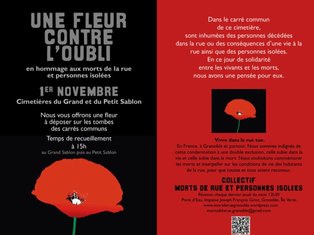 Le Collectif Morts de Rue et Personnes Isolées sera présent le premier novembre, aux cimetières du Grand et du Petit Sablon, pour rendre hommage à ces personnes décédées dans la rue ou isolées.