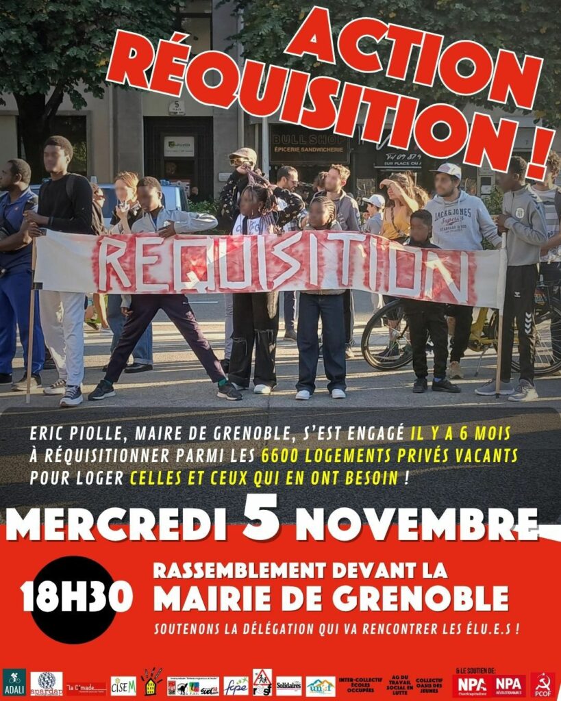 L’association Droit Au Logement Isère appelle à un rassemblement pour la réquisition des logements vides à Grenoble, afin de soutenir la délégation qui sera reçue par les élus municipaux.