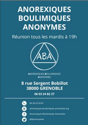 Sur le modèle des Alcooliques anonymes, l’association Anorexiques Boulimiques Anonymes (ABA) organise chaque mardi à 19h des réunions où les personnes qui souffrent de ce trouble du comportement alimentaire peuvent échanger, se confier, reprendre confiance, se rétablir. À noter que ces réunions sont ouvertes aux proches et aux professionnels le premier mardi de chaque mois.