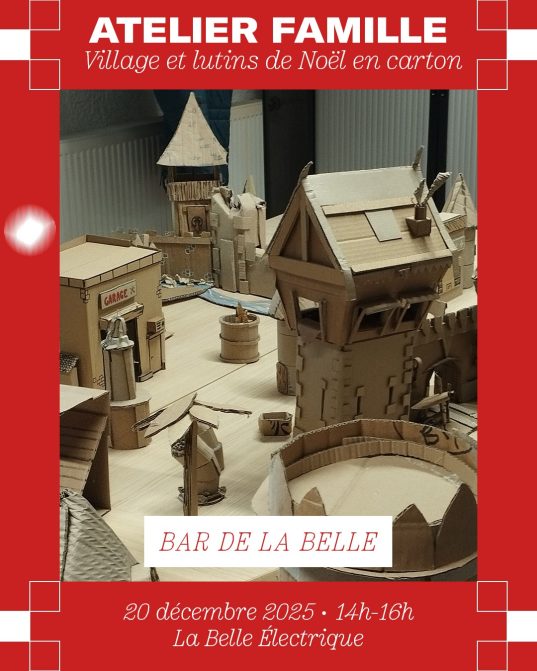 La Belle Électrique invite l’association Force et Carton pour un atelier de construction de maisonnettes de Noël, chalets enneigés et lutins… en carton ! Un moment créatif et chaleureux pour imaginer, découper, assembler et repartir avec une petite maison féerique à installer sous le sapin !