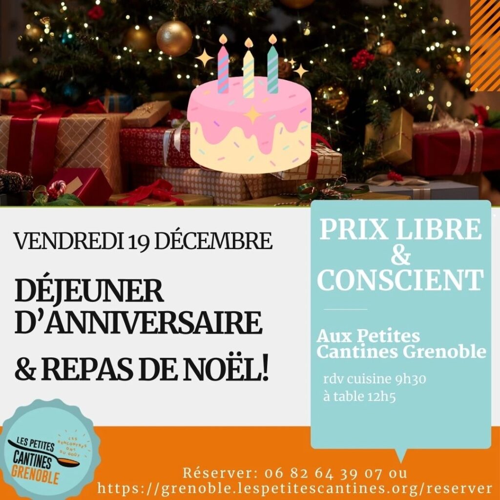 Les Petites Cantines proposent à Grenoble une soirée réveillon ainsi qu’un déjeuner de noël, les jeudi 18 et vendredi 19 décembre, le tout à prix libre.