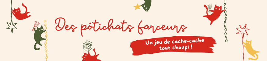 Sept pôtichats se sont (assez mal) dissimulés dans ce paysage (plus ou moins) hivernal. Sauras-tu les retrouver ?