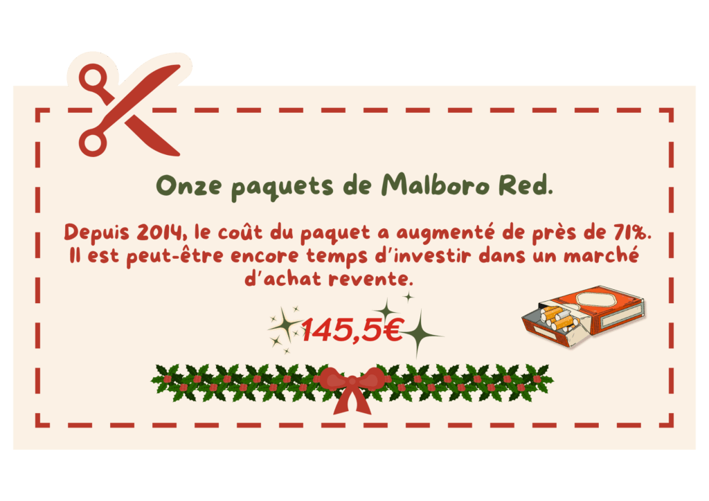 Bons cadeaux pour cigarettes, amendes, formations en crypto-monnaie, … – à glisser sous tous les sapins afin de faire rêver les heureux bénéficiaires de la prime de Noël de cette année.