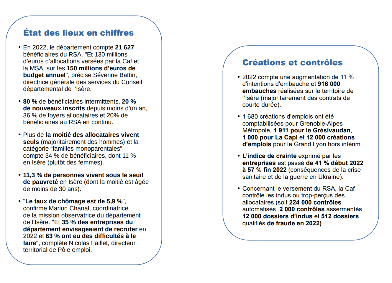 « Nul n’est inemployable et nous devons à tous les allocataires du RSA un parcours d’accompagnement adapté, visant l’autonomie, les savoir-faire et les appétences. Sans exclure les problématiques de garde d’enfants, de fracture numérique, de mobilité, de santé, ou de handicap, précise Cathy Simon, conseillère départementale. Il faut aussi ajuster l’offre d’insertion aux besoins des employeurs isérois, des politiques publiques d’insertion et des dispositifs complémentaires portés par l’État, la Région, les EPCI, et le PLIE du bassin grenoblois ».