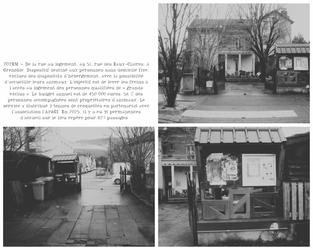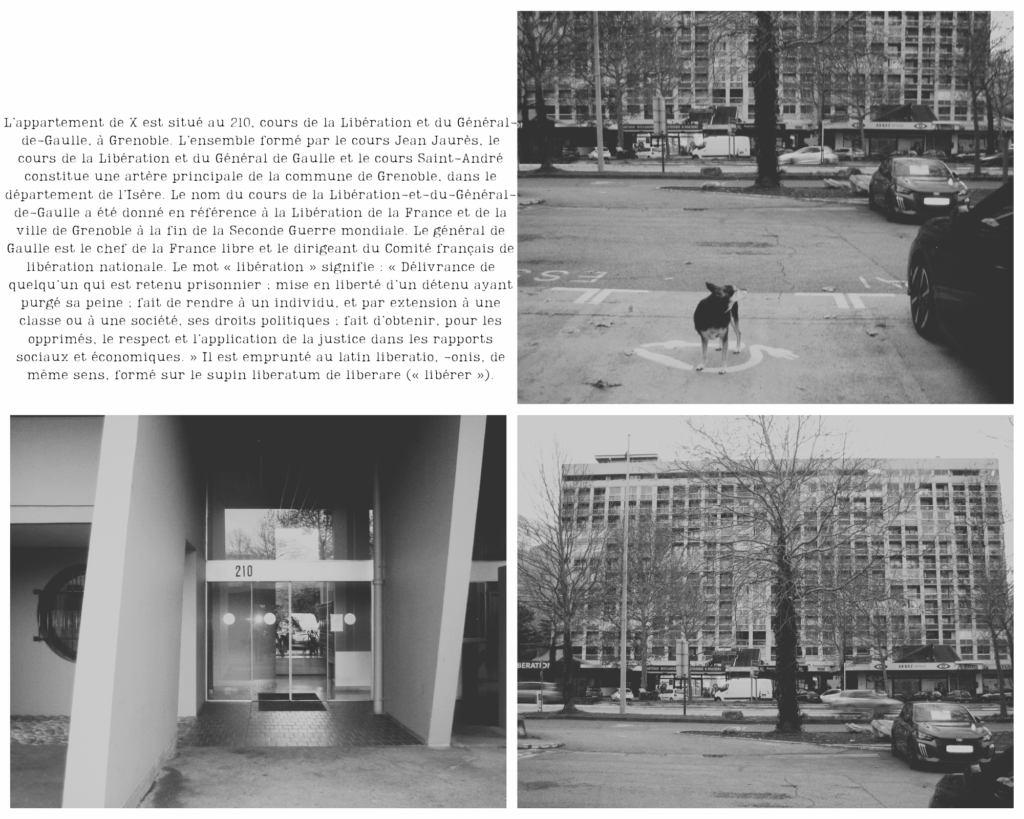 L’événement se déroule le lundi seize décembre deux mille vingt-quatre. L’entrée dans un logement social, après une longue période de rue, est une célébration intimiste, en présence d’un agent technico-commercial de la Société Dauphinoise pour l’Habitat et d’une travailleuse sociale du service Totem. Si l’accès à un logement stable marque une première étape et que mon parcours d’insertion sociale se conforme, autant que possible, à une exigence de normativité, mon intégration au système socio-économique se heurte aux séquelles d’une existence en marge. En l’absence d’un prototype unique de socialisation ou d’appropriation des normes, le tissu associatif grenoblois regorge de modèles alternatifs et t’entraîne dans son sillage émancipateur.