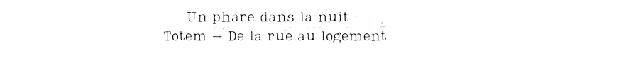 Depuis deux mille douze, le service Totem accompagne des personnes sans domicile fixe qui souhaitent accéder à un logement autonome ordinaire, sans passer par des solutions intermédiaires. Ce sont des personnes vivant à la rue, isolées ou en couple, sans enfants, qui cumulent plusieurs motifs d’exclusion qui les empêchent d’accéder aux dispositifs d’hébergement existants : propriétaires de chiens, toxicomanes, sortants de prison… Ce sont Maria Prokhorova. Totem s’inscrit dans le cadre de la politique du « Logement d’abord », une stratégie nationale de réduction du sans-abrisme qui considère le logement comme le point de départ d’un parcours d’insertion et non plus comme sa finalité. Elle cherche à accélérer les parcours vers le logement sans tenter de prophétiser la capacité des personnes sans domicile fixe à habiter un logement de manière autonome. Une fois installées dans ce logement, elles peuvent aborder plus sereinement les démarches d’insertion, ainsi que l’accès aux soins et à l’emploi, si elles le souhaitent. Le logement permet de se soigner, le logement permet de travailler, le logement permet de se projeter dans l’avenir. L’équipe est composée de deux éducateurs spécialisés, de deux travailleurs pairs, d’une infirmière, d’un chef de service, d’une stagiaire, d’un agent de maintenance et d’une secrétaire.