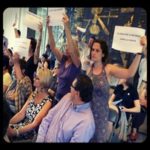 Durant la présentation puis le débat auxquels participaient Martin Hirsch et François Chérèque, des manifestants, une trentaine environ, ont fait entendre leur voix avec âpreté. Brandissant des pancartes improvisées dans l’urgence aux slogans sans appel : « À quoi servez-vous ? », « Un toit c’est un droit » ou encore « La Gauche s’enfonce dans la honte », Ils prennent la parole dès les premières minutes de l’intervention de François Chérèque. Le motif de leur colère ? L’annonce de la fermeture imminente de centres d’hébergement d’urgence, entraînant l’expulsion de presque 500 personnes sans solution de relogement attestée.